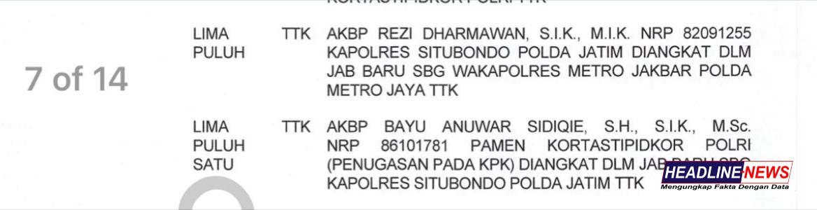 Pergantian tersebut secara resmi tertuang dalam Surat Telegram Kapolri Nomor: ST/2781A/XII/KEP./2025 yang diterbitkan pada 15 Desember 2025. Dalam surat telegram tersebut, AKBP Rezi Dharmawan, S.I.K., M.I.K., yang telah mengemban amanah sebagai Kapolres Situbondo selama kurang lebih dua tahun, dimutasi dan mendapatkan promosi jabatan sebagai Wakil Kepala Polres Metro Jakarta Barat, Polda Metro Jaya.