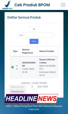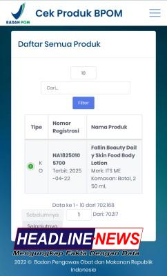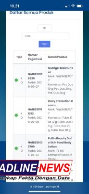 Headline-news.id Kamis 15 Mei 2025: Maraknya peredaran kosmetik ilegal di Indonesia kembali menjadi sorotan publik. Kali ini, merek kosmetik lokal Fallin Beauty menjadi pusat perhatian setelah sejumlah produk mereka diduga kuat melanggar berbagai ketentuan hukum dan regulasi yang ditetapkan oleh Badan Pengawas Obat dan Makanan Republik Indonesia (BPOM RI). Temuan ini disampaikan oleh Tim Investigasi dari Lembaga Swadaya Masyarakat Siti Jenar Situbondo (LSM SITI JENAR), yang telah melakukan penelusuran lapangan dan audit label terhadap sejumlah produk Fallin Beauty.