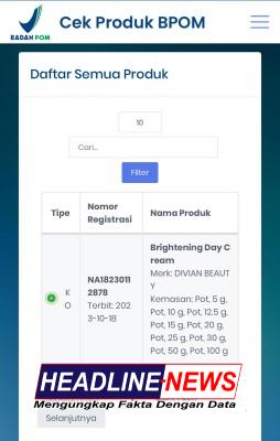 Penyalahgunaan Nomor BPOM: Ketiga varian menggunakan satu nomor notifikasi BPOM: NA18230112878, yang ternyata milik merek lain (DIVIAN BEAUTY). Pelanggaran ini termasuk berat dan bisa dikategorikan sebagai pemalsuan dokumen legal produk.