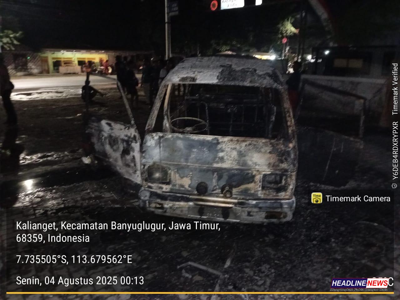 Headline-news.id Situbondo, 3 Agustus 2025 — Sebuah kebakaran hebat terjadi di halaman depan Toko Basmalah, Kecamatan Banyuglugur, Kabupaten Situbondo, pada Sabtu malam (2/8) sekitar pukul 23.30 WIB. Mobil Suzuki Carry yang diduga kuat mengangkut bahan bakar minyak (BBM) bersubsidi jenis Pertalite terbakar hebat, menyebabkan satu orang mengalami luka bakar serius serta menciptakan kepanikan warga di sekitar lokasi kejadian.