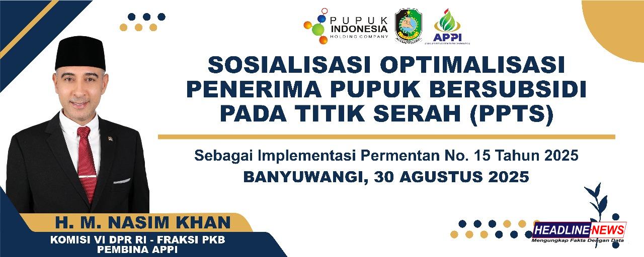 Headline-news.id Banyuwangi, Senin 1 September 2025 – PT Pupuk Indonesia (Persero) bersama Asosiasi Pengecer Pupuk Indonesia (APPI) menggelar sosialisasi terkait optimalisasi penerima pupuk bersubsidi pada titik serah (PPTS). Kegiatan ini berlangsung pada Sabtu (30/8/2025) di Hotel El Royale Banyuwangi dan dihadiri sekitar 350 peserta yang merupakan perwakilan dari Kabupaten Banyuwangi, Situbondo, dan Bondowoso.