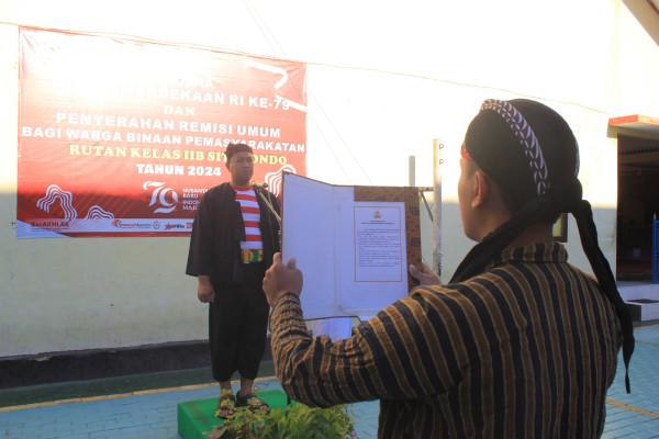 Selain pengibaran bendera merah putih, kagiatan Upacara dalam rangka HUT Kemerdekaan RI yang ke-79 ini didalamnya juga terdapat penyerahan remisi terhadap Narapidana secara simbolis dan penyerahan piagam Satya Lencana Karya Satya kepada 4 (empat) petugas Rutan Situbondo.